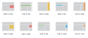 As dimensões dos banners seguem padrões internacionais, estipulados pela Coalision for Advertising Supported Information and Entertainment (CASIE) e pelo Internet Advertising Bureau (IAB).