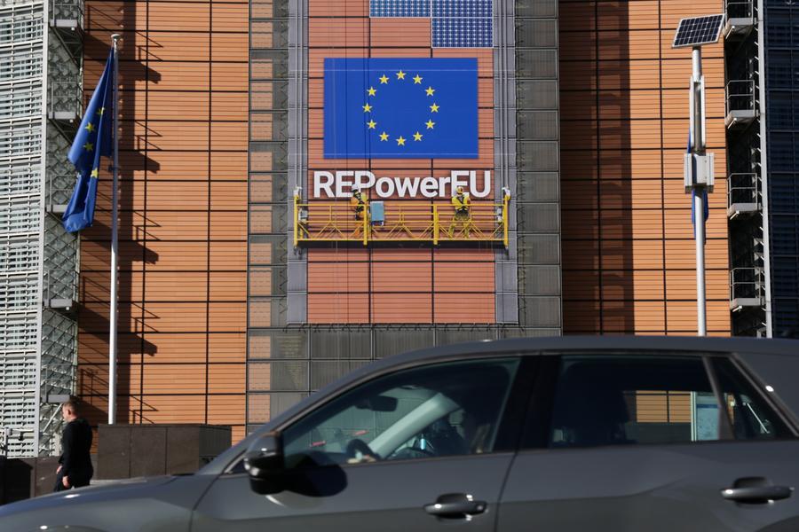 Veículo passa em frente ao prédio da Comissão Europeia em Bruxelas, Bélgica, em 18 de outubro de 2022. (Xinhua/Zheng Huansong)