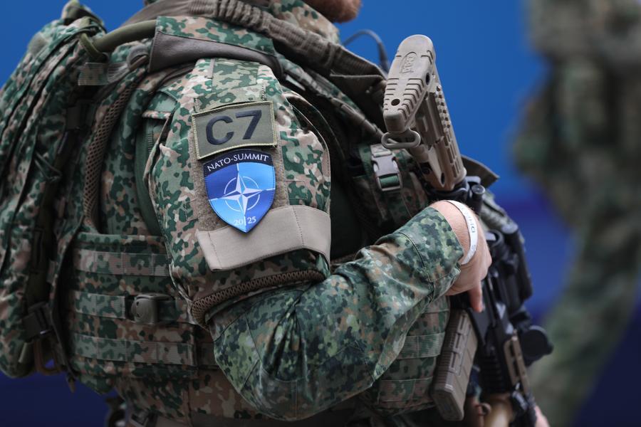 Um agente de segurança trabalha no local da cúpula da Organização do Tratado do Atlântico Norte (OTAN) em Haia, Holanda, em 24 de junho de 2025. (Xinhua/Zhao Dingzhe)