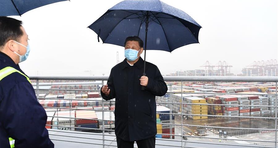 Xi visitou a área de Chuanshan, no Porto Ningbo-Zhoushan, um dos maiores portos de contêineres do mundo, onde cerca de 1,2 bilhão de toneladas de carga foram tratadas em 2019.