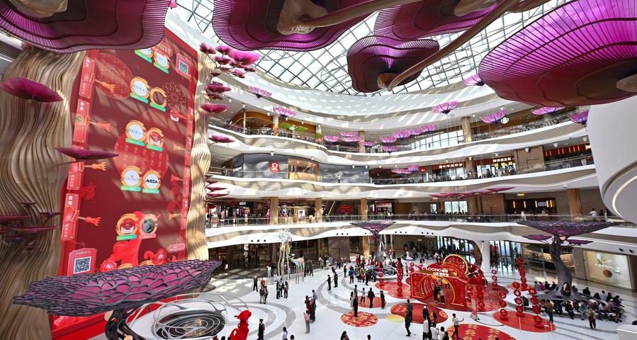 (240318) -- BEIJING, March 18, 2024 (Xinhua) -- Customers shop at Haikou International Duty-Free Shopping Complex in Haikou, south China's Hainan Province, Feb. 11, 2024. (Xinhua/Guo Cheng)