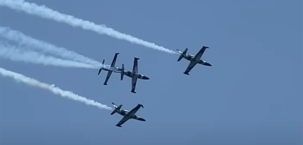 Imagens do acidente transmitidas pela CMTV, uma rede de TV local, mostram uma das aeronaves de um grupo de seis caindo verticalmente e se chocando, causando uma forte explosão, enquanto outra atinge o solo horizontalmente.