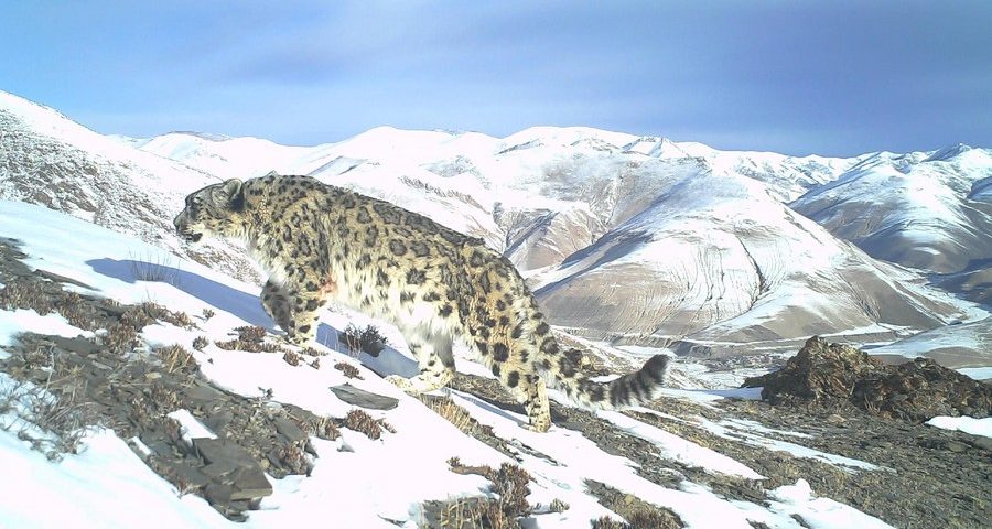 Conhecido como o “rei das montanhas de neve”, o leopardo-das-neves está sob proteção nacional de primeira classe na China e é listado como vulnerável pela União Internacional para a Conservação da Natureza.