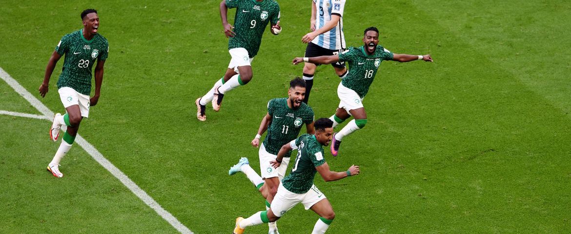 A Copa do Mundo do Catar precisou de três dias de bola rolando para conhecer a primeira grande zebra desta edição – quiçá, uma das maiores da história da competição. Nesta terça-feira (22), a Arábia Saudita venceu a Argentina, do craque Lionel Messi, atual campeã sul-americana, por 2 a 1, de virada, no Estádio Lusail.