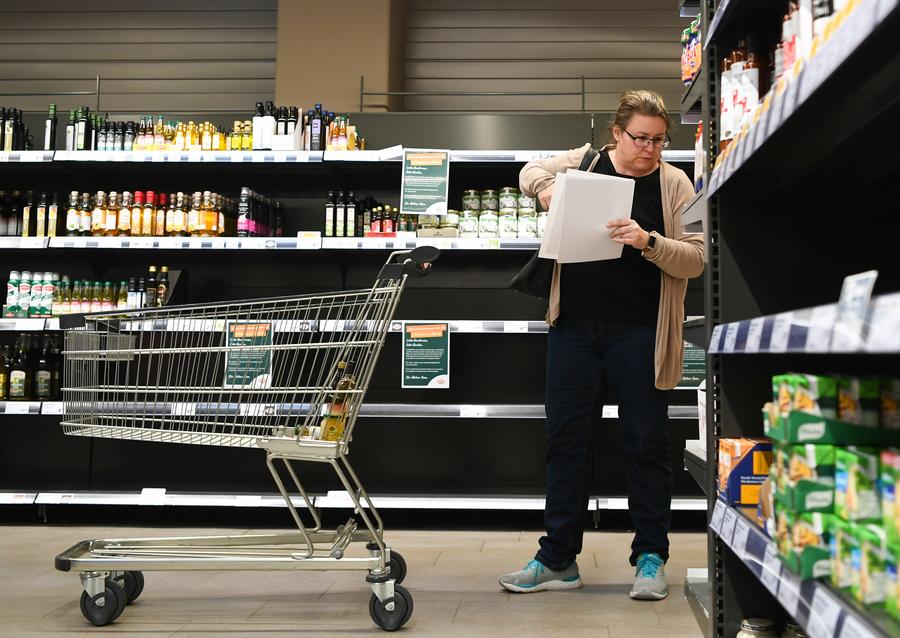 (220423) -- FRANKFURT, April 23, 2022 (Xinhua) -- A woman shops at a supermarket in Frankfurt, Germany, April 22, 2022. German producer prices rose by 30.9 percent year-on-year in March, the steepest increase since the start of the data series in 1949, the Federal Statistical Office (Destatis) said on Wednesday. TO GO WITH "German producer prices rise at record pace in March: Destatis" (Xinhua/Lu Yang)