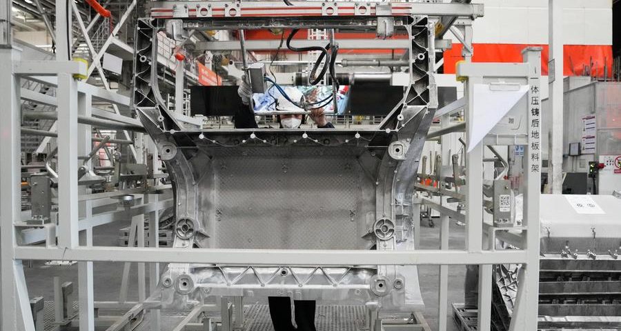 (250616) -- BEIJING, June 16, 2025 (Xinhua) -- A staff member works at Xiaomi's automobile factory in Beijing, capital of China, June 16, 2025. Located in the Beijing Economic-Technological Development Area, China's tech giant Xiaomi's automobile factory sprawls across over 700,000 square meters. Integrating research, testing, production and sales, the factory is open to the public to showcase its cutting-edge automotive production capabilities. (Xinhua/Zheng Huansong)