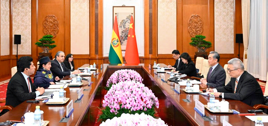 Beijing – O ministro das Relações Exteriores da China, Wang Yi, conversou com a ministra das Relações Exteriores da Bolívia, Celinda Sosa Lunda, em Beijing, neste domingo, e ambos os lados se comprometeram a avançar na cooperação bilateral e na coordenação multilateral.