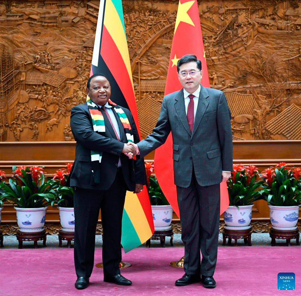 Beijing — O conselheiro de Estado e ministro das Relações Exteriores chinês, Qin Gang, conversou com o ministro das Relações Exteriores e Comércio Internacional do Zimbábue, Frederick Shava, em Beijing, nesta segunda-feira, pedidno o maior desenvolvimento dos laços bilaterais.