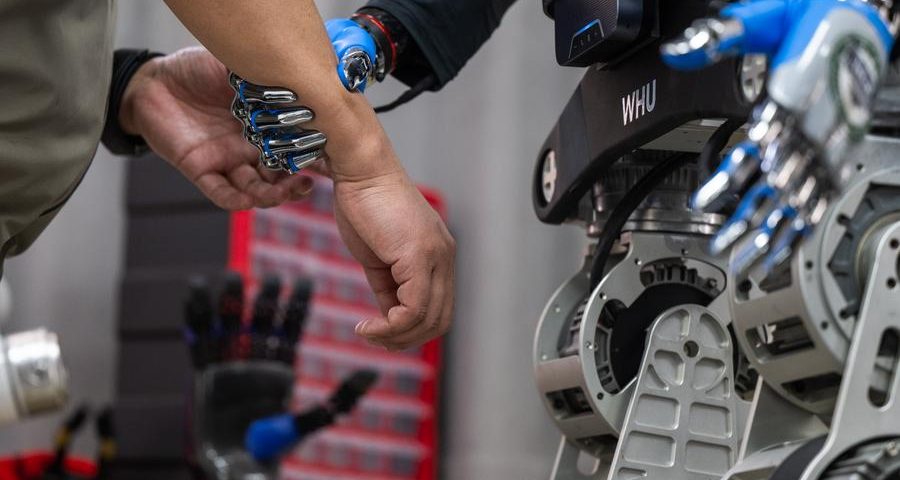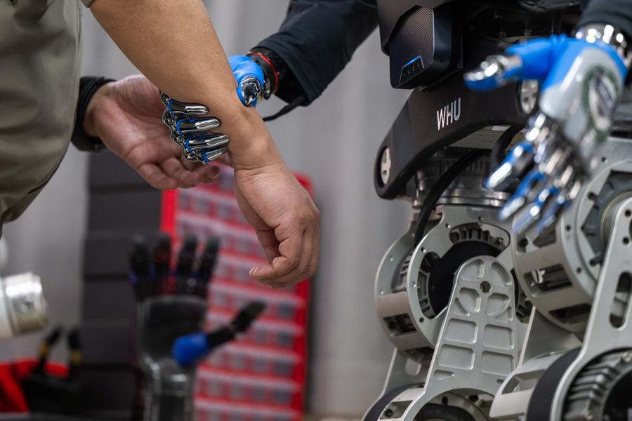 (250325) -- WUHAN, March 25, 2025 (Xinhua) -- A R&D team member debugs a humanoid robot at the Learning Algorithms & Soft Manipulation Lab of Wuhan University in Wuhan, central China's Hubei Province, March 19, 2025. In recent years, Hubei Province has strengthened the introduction and training of scientific and technological innovation subjects and promoted the development of humanoid robot industry. Relying on strong scientific research capacity and industrial foundation, Hubei Province has organized many universities, research institutes and enterprises in the province to carry out scientific research of humanoid robots and explore the application scenarios. At present, the humanoid robot industry in Hubei Province has gathered a number of key enterprises. (Xinhua/Xiao Yijiu)
