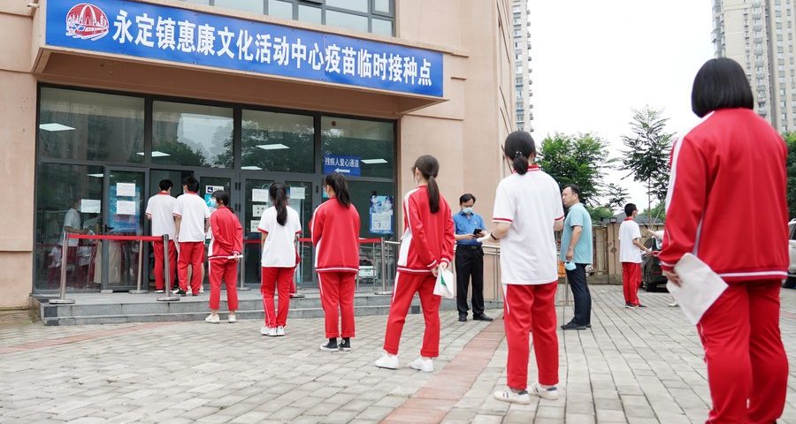A campanha de vacinação em massa da China atualmente visa principalmente adultos com mais de 18 anos. Até meados de julho, várias regiões provinciais já tinham anunciado que implementariam a vacinação contra COVID-19 para menores entre 12 e 17 anos.