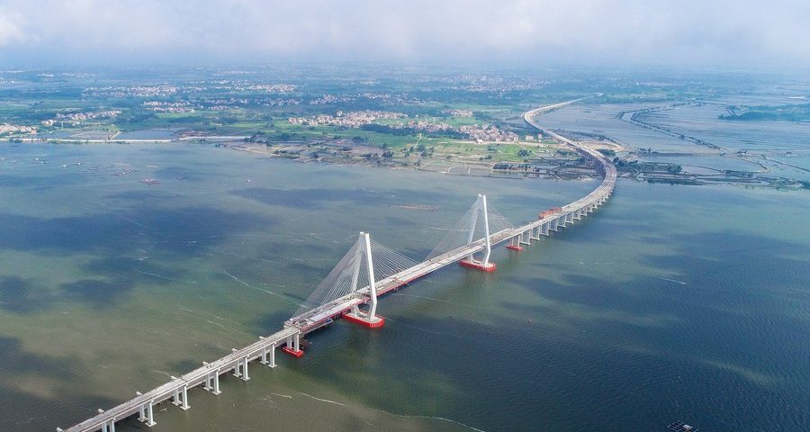 Grande ponte Luzhou em construção, na cidade de Zhanjiang, Província de Guangdong, sul da China, na foto aérea de 25 de maio de 2023. Foto: Liu Dawei