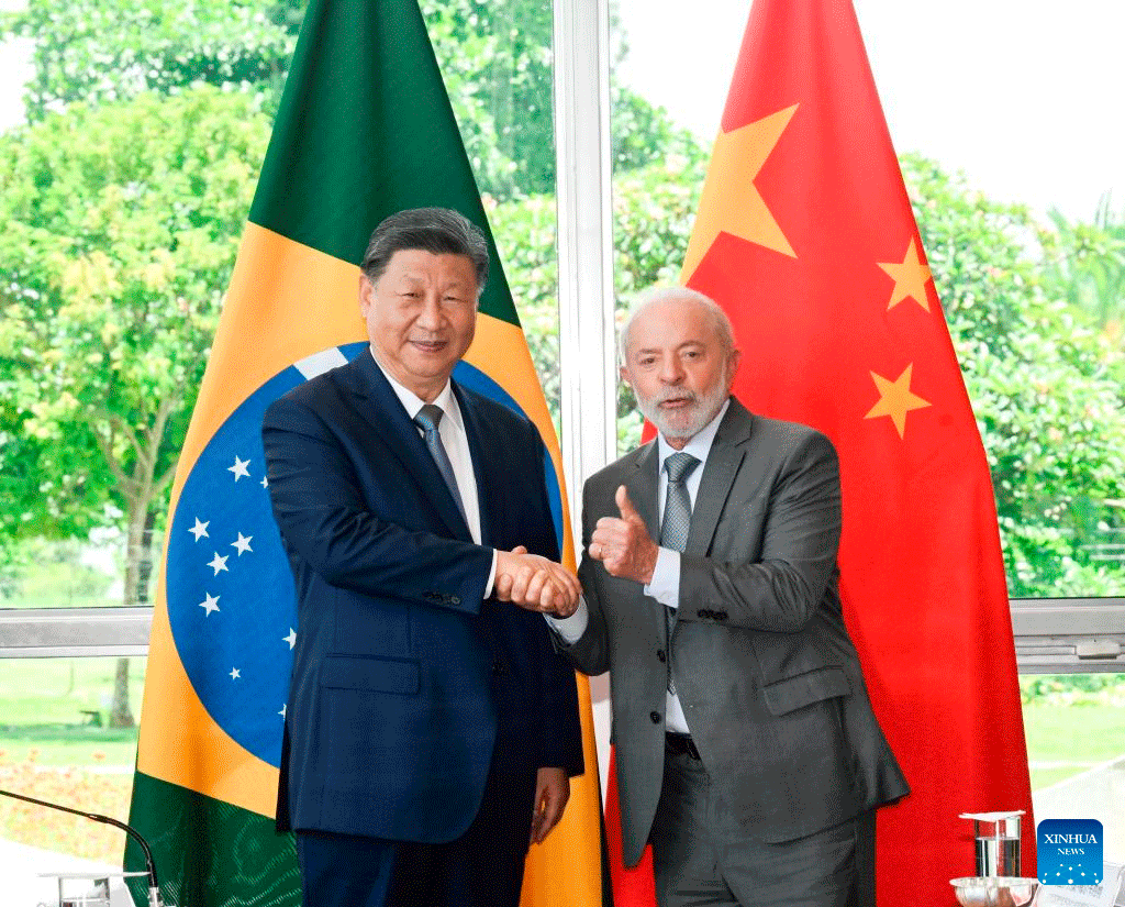 Observando que a China valoriza muito o status e a influência internacional do Brasil e apoia o Brasil a desempenhar um papel mais importante no cenário internacional, Xi disse que a China está pronta para fortalecer a comunicação e a cooperação com o Brasil nas Nações Unidas, no BRICS e em outros mecanismos multilaterais; para apoiar a presidência brasileira do BRICS no próximo ano; para promover o desenvolvimento de alta qualidade de uma maior cooperação do BRICS; e para fazer com que a voz do BRICS seja mais alta na defesa do multilateralismo e na melhoria da governança global.