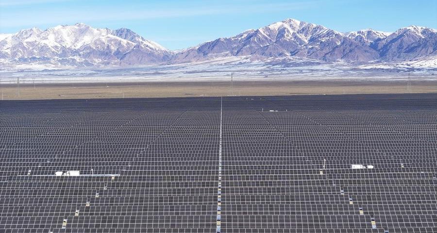 (250117) -- BEIJING, Jan. 17, 2025 (Xinhua) -- An aerial drone photo taken on Jan. 6, 2025 shows a partial view of the Shichengzi photovoltaic power station in Hami City, northwest China's Xinjiang Uygur Autonomous Region. From the land to the sea, China's pursuit of green energy has promoted the development of wind power and solar power industries. In the context of the global energy transition from fossil fuels to renewable energy sources, China's legions of wind turbines and seas of photovoltaic panels are quite eye-catching. China's new energy industry has experienced rapid growth in recent years, maintaining a double-digit annual growth rate. Since 2013, the country's wind power and solar power installed capacity have grown six times and more than 180 times respectively. According to data of the National Energy Administration, by the end of 2024, China's installed wind power capacity reached 510 million kilowatts, while its solar power capacity stood at 840 million kilowatts, and in 2024, China's utilization rates of wind and solar power stayed above 95 percent, which significantly contributed to world's green energy development. (Photo by Feng Yang/Xinhua)
