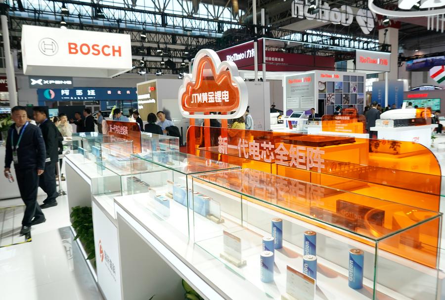 (241128) -- BEIJING, Nov. 28, 2024 (Xinhua) -- This photo taken on Nov. 26, 2024 shows lithium battery products at the booth of Gotion at the second China International Supply Chain Expo (CISCE) in Beijing, capital of China. The expo's smart vehicle exhibition area showcases key technologies and products along the entire industrial chain of smart vehicles, ranging from core raw materials to key components and relevant services. Related players including Rio Tinto, Bosch, Baowu Steel and XPENG have demonstrated the in-depth integration and cooperation along the global industrial chain supply chain. (Xinhua/Zhang Chenlin)