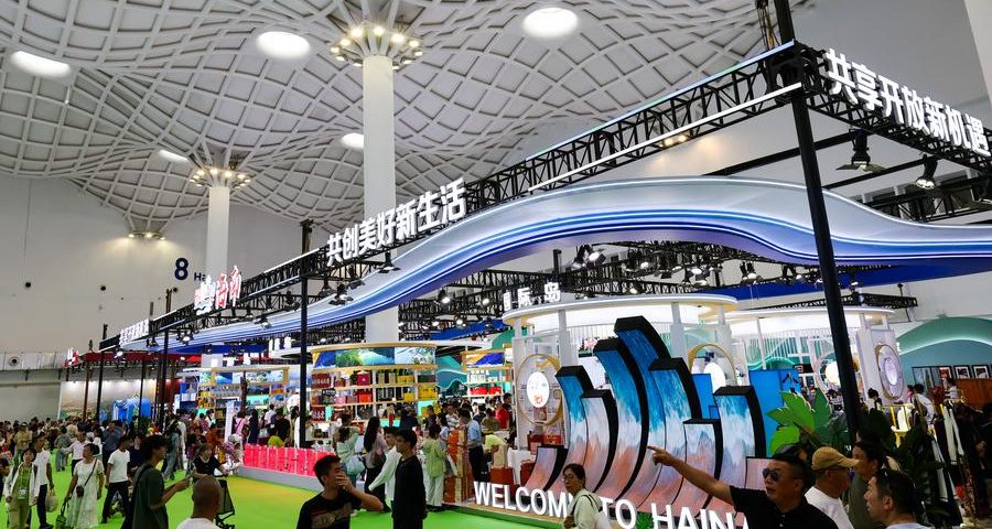 (250417) -- HAIKOU, April 17, 2025 (Xinhua) -- People visit the Domestic Brands Zone of the 5th China International Consumer Products Expo (CICPE) in Haikou, south China's Hainan Province, April 17, 2025. The 5th CICPE opened its door to general public on Thursday, showcasing goods and services across sectors such as technology, healthcare, culture, tourism, and sports. (Xinhua/Yang Guanyu)