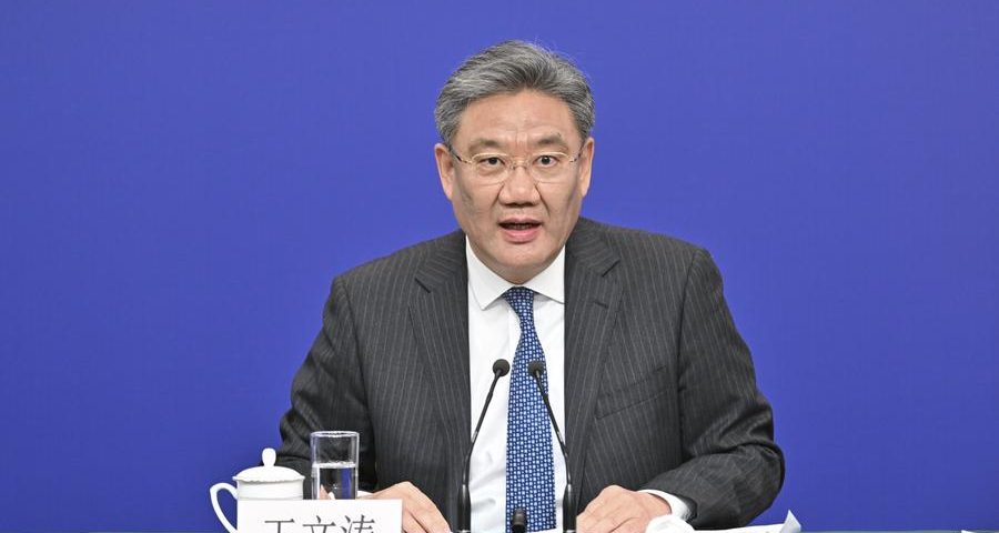 (240306) -- BEIJING, March 6, 2024 (Xinhua) -- Wang Wentao, minister of commerce, speaks at a press conference on economy for the second session of the 14th National People's Congress (NPC) in Beijing, capital of China, March 6, 2024. Zheng Shanjie, director of the National Development and Reform Commission, Lan Fo'an, minister of finance, Pan Gongsheng, governor of the People's Bank of China, and Wu Qing, chairman of the China Securities Regulatory Commission, also attended the press conference on Wednesday. (Xinhua/Li Xin)