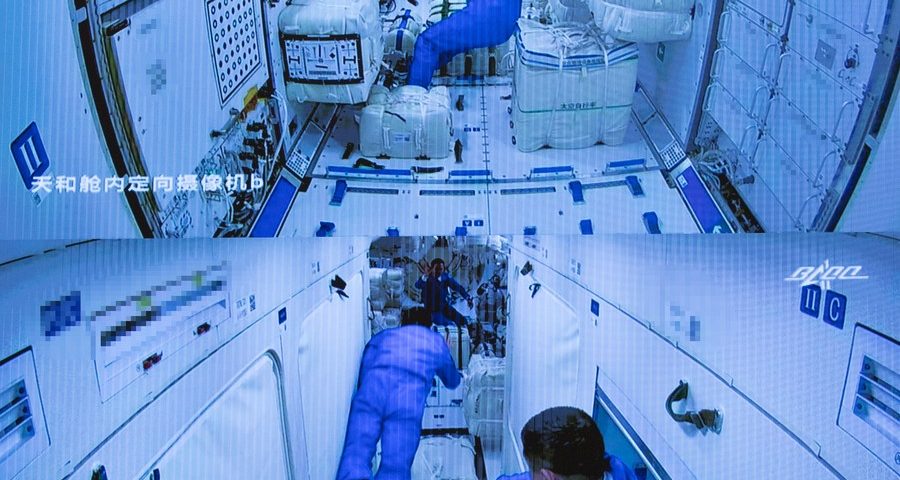 Beijing – Três astronautas chineses vivem e trabalham no módulo central da estação espacial chinesa Tianhe há mais de um mês. Eles ficarão no espaço por três meses.