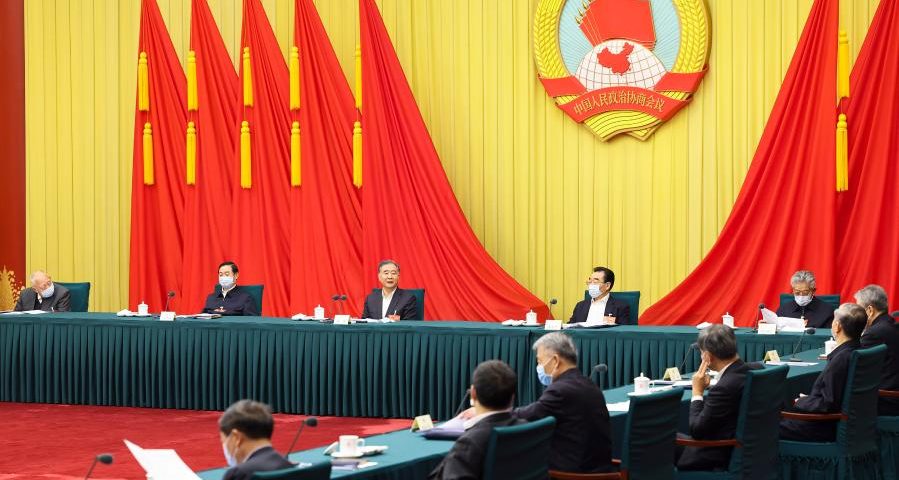 Wang Yang, membro do Comitê Permanente do Birô Político do Comitê Central do Partido Comunista da China e presidente do Comitê Nacional da CCPPC, comandou a reunião.