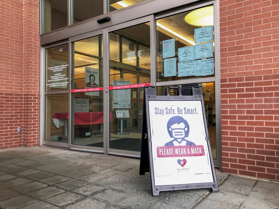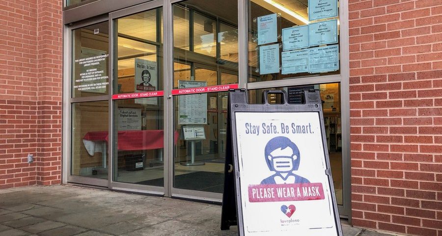 Um sinal de requisitos de máscara facial é visto em um cinema em Nova York, Estados Unidos, em 5 de março de 2021. (Xinhua/Michael Nagle)