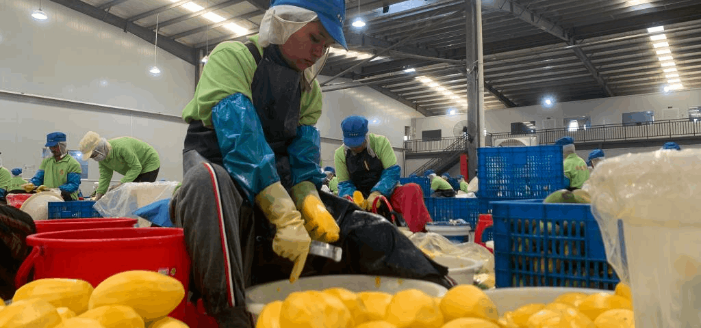 Kampong Speu, Camboja – Lay Mengleang, fatiadora de manga da Zhong Bao (Camboja) Food Science & Technology Co., Ltd. teve um salário melhor depois que a fábrica registrou um aumento significativo nos pedidos de compra da China.
