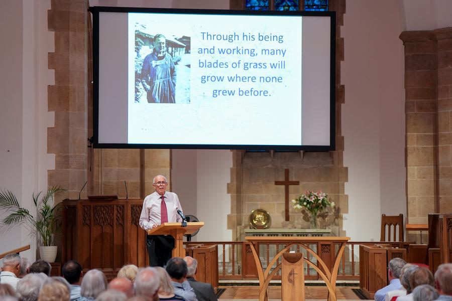 “George Hogg virou um verdadeiro amigo, um nobre e sábio amigo da China”, disse Mark Aylwin Thomas, sobrinho do falecido Hogg e autor da biografia “Blades of Grass: The Story of George Aylwin Hogg” (“Lâminas de Grama: A História de George Aylwin Hogg”, em tradução livre), em seu discurso na igreja.
