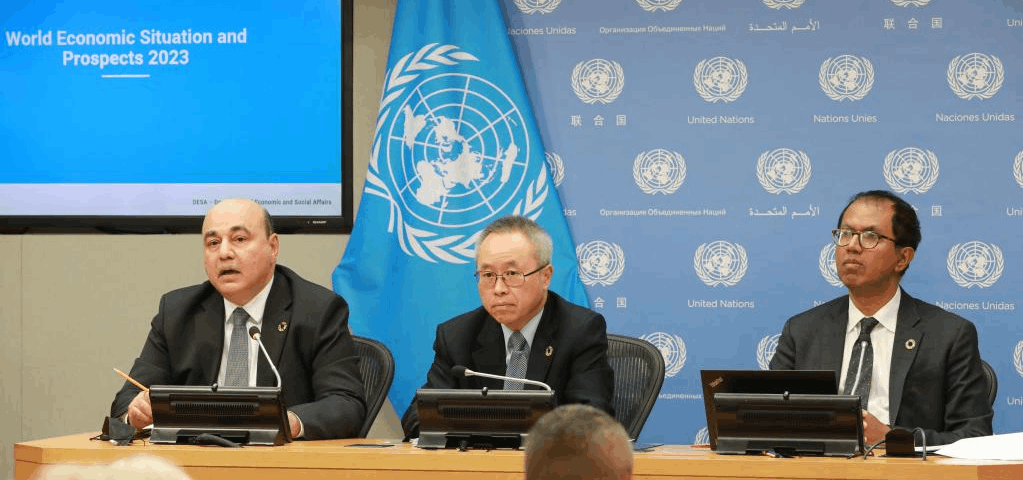 O relatório Situação Econômica Mundial e Perspectivas para 2023 da ONU previu que o crescimento global aumentará moderadamente para 2,7% em 2024, já que alguns ventos macroeconômicos contrários devem começar a diminuir no próximo ano.