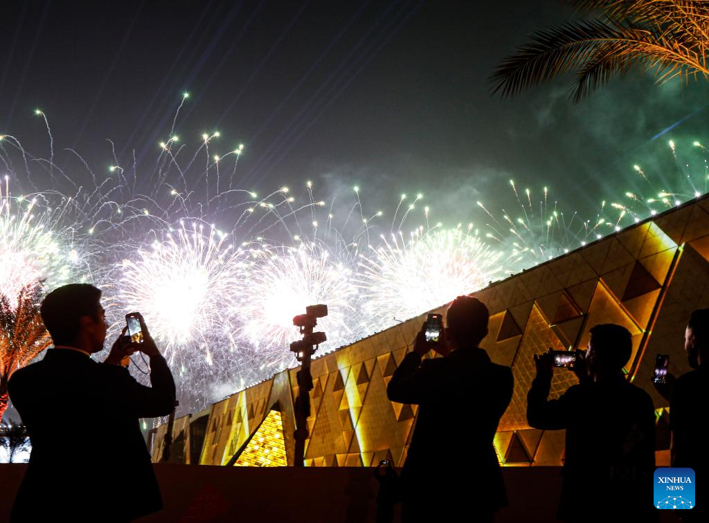 A cerimônia de inauguração, realizada no pátio do museu com as Grandes Pirâmides de Gizé e a Esfinge como pano de fundo, contou com eventos culturais e apresentações artísticas que celebram a rica herança do Egito. As festividades incluíram apresentações musicais, uma apresentação de luzes e uma queima de fogos de artifício.