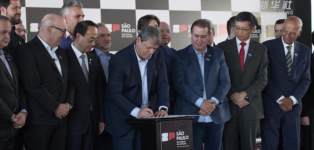Com a presença de autoridades e empresários chineses e brasileiros, foi assinado o contrato para a construção do Trem Intercidades, o mais rápido e moderno do Brasil, que deverá entrar em operação em 2031 e contará com investimentos da ordem de R$14 bilhões.
