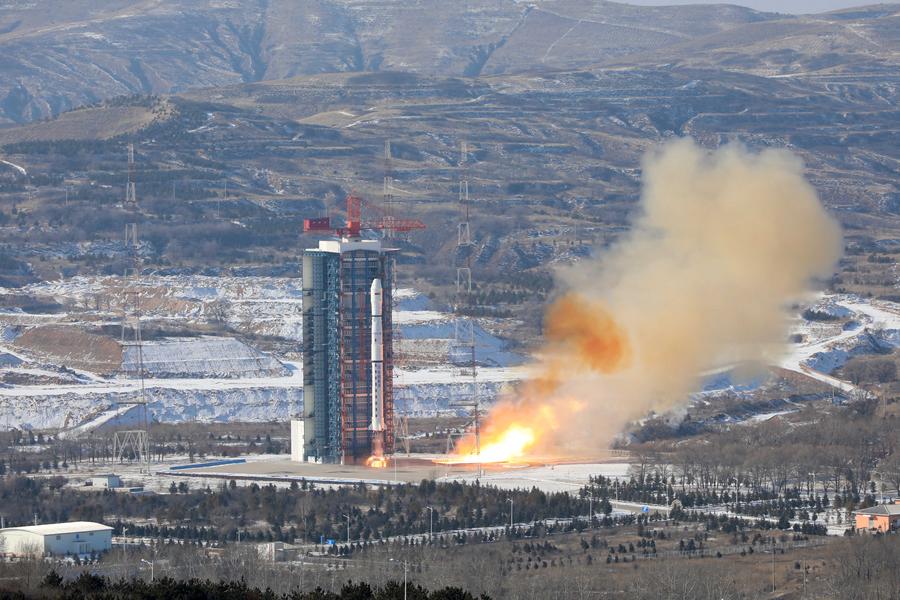 (191220) -- TAIYUAN, Dec. 20, 2019 (Xinhua) -- The China-Brazil Earth Resource Satellite-4A is launched on a Long March-4B carrier rocket at Taiyuan Satellite Launch Center in north China's Shanxi Province on Dec. 20, 2019. A new satellite, jointly developed by China and Brazil, was sent into space on Friday, pushing forward the aerospace cooperation between the two countries, according to the China National Space Administration (CNSA). The satellite is the sixth satellite under the earth resource satellite cooperation program between the two countries. It will obtain global optical remote-sensing data and support the Brazilian government's monitoring of the Amazon rainforest and the country's environmental changes. (Photo by Zheng Taotao/Xinhua)