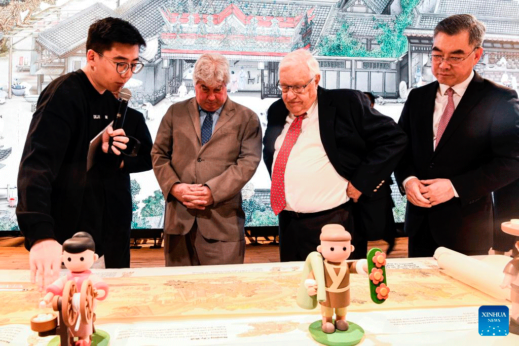 Amaris Malfa, jovem de Boston, se impressionou com a arte digital “An Era in Nanjing” (“Uma Era em Nanjing”, em tradução livre), que permite ao público participar presencialmente da dinâmica paisagem urbana de Jinling e passear em tempo real pela cidade histórica de mais de mil anos da dinastia Song da China.