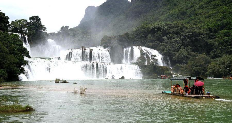 (240506) -- NANNING, May 6, 2024 (Xinhua) -- This undated file photo shows people visiting the China-Vietnam Detian Waterfall cross-border tourism cooperation zone in the border city of Chongzuo in south China's Guangxi Zhuang Autonomous Region. TO GO WITH "Economic Watch: China-Vietnam border tourism booming during May Day holiday" (Xinhua/Cao Yiming)