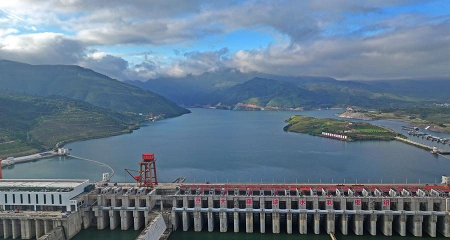 (231205) -- GUIPING, Dec. 5, 2023 (Xinhua) -- This aerial photo taken on Dec. 4, 2023 shows the Dateng Gorge Water Conservancy project in Guiping City, south China's Guangxi Zhuang Autonomous Region. The Dateng Gorge Water Conservancy project, started in 2014, is a crucial part of the country's water network to control floods, facilitate shipping, generate electricity, and provide irrigation. The core construction phase of this project was completed in September this year. (Xinhua/Zhou Hua)