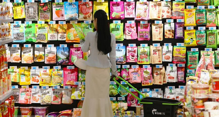 (240411) -- BEIJING, April 11, 2024 (Xinhua) -- A consumer shops at a supermarket in Tengzhou, east China's Shandong Province, April 11, 2024. China's consumer price index (CPI), a main gauge of inflation, edged up 0.1 percent year on year in March, official data showed Thursday. (Photo by Sun Yang/Xinhua)