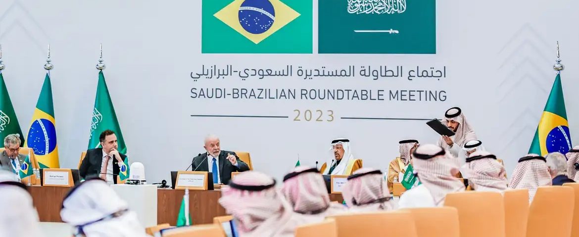 Lula e Salman se reuniram ontem (28) em Riad. Os dois líderes estimam que as transações comerciais entre os dois países podem saltar dos atuais US$ 8 bilhões para US$ 20 bilhões até 2030.