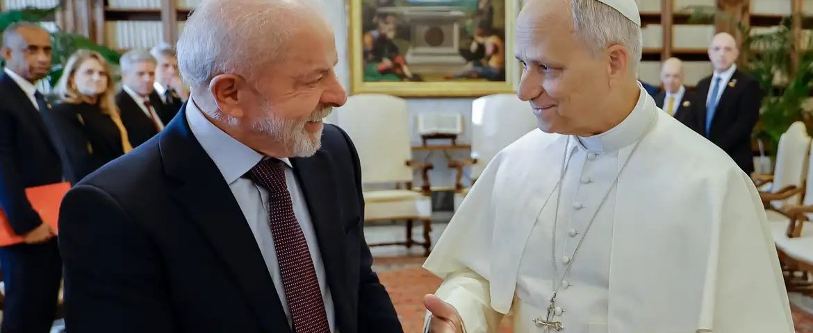 O presidente Luiz Inácio Lula da Silva se reuniu nesta segunda-feira (13), no Vaticano, com o papa Leão XIV. Em seu perfil na rede social X, Lula relatou ter conversado com o pontífice sobre “religião, fé, o Brasil e os imensos desafios que temos que enfrentar no mundo”.