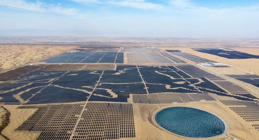 Hohhot – No vilarejo de Chaideng, na cidade de Ordos, 3,46 milhões de painéis solares azuis se estendem pelo deserto, cobrindo 30 milhões de metros quadrados e transformando as areias sem fim em um cintilante “mar fotovoltaico”.