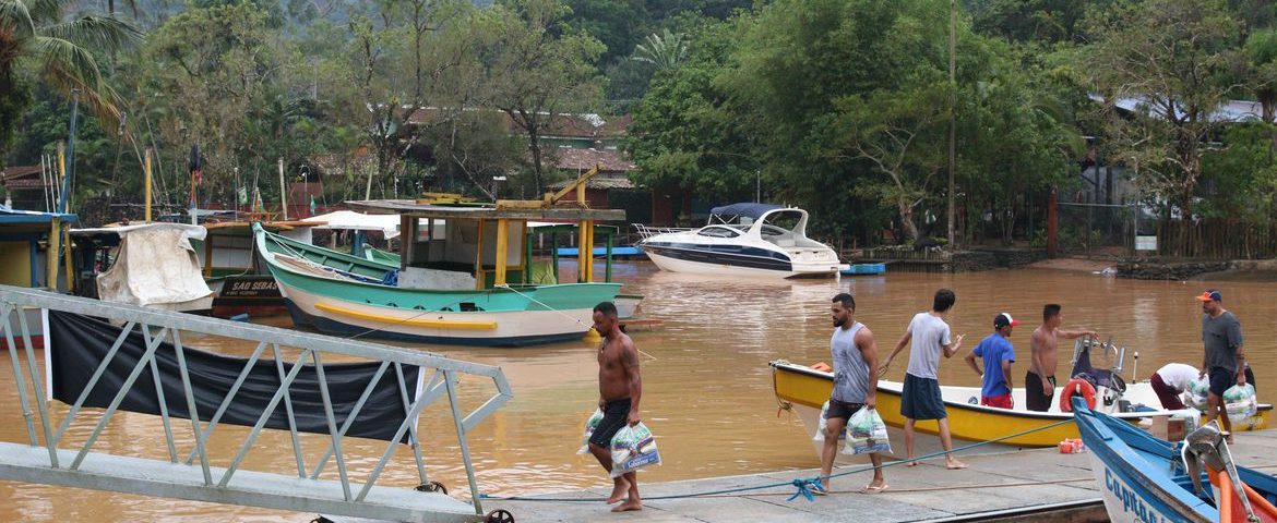 Os pescadores, organizados na associação local, também levam mantimentos para as comunidades que sofreram mais com o desastre. Na cidade, os deslizamentos mataram 43 pessoas e deixaram centenas de desabrigados.