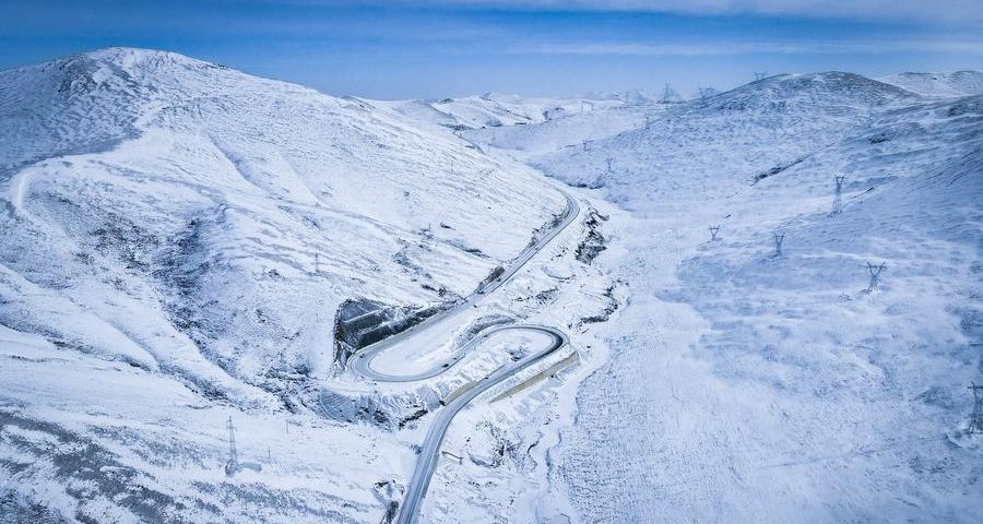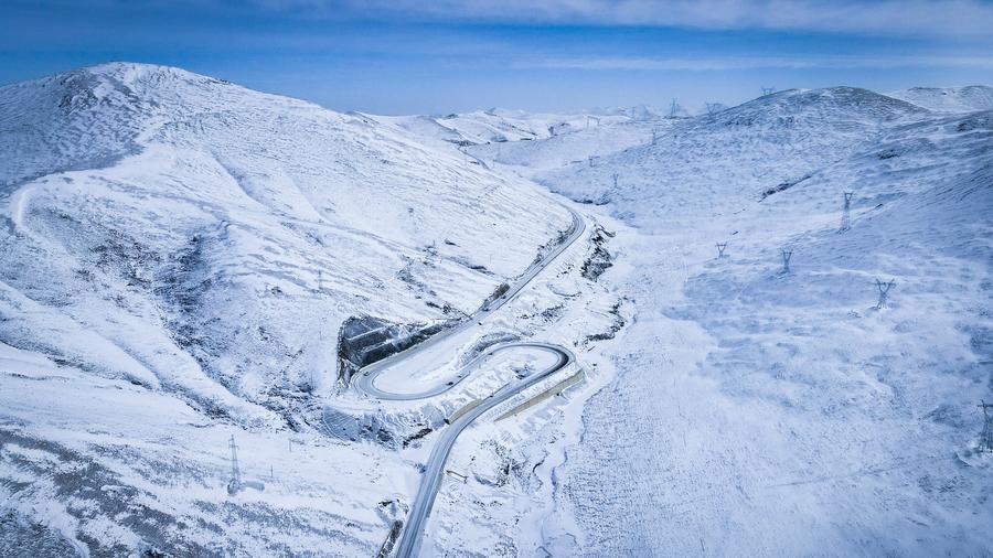 (250309) -- GOLOG, March 9, 2025 (Xinhua) -- An aerial drone photo taken on March 8, 2025 shows the snow scenery in Gande County of Tibetan Autonomous Prefecture of Golog, northwest China's Qinghai Province. (Xinhua/Qi Zhiyue)