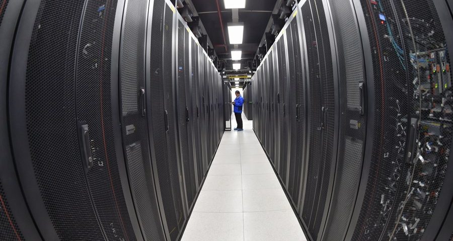 Um técnico mantém máquinas em um centro de computação em nuvem no distrito de Changle, na cidade de Fuzhou, na Província de Fujian, no sudeste na China, em 24 de abril de 2018. (Xinhua/Song Weiwei)