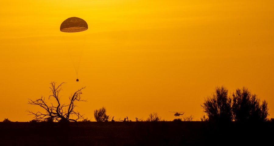 A cápsula de retorno da nave espacial tripulada Shenzhou-16, transportando os taikonautas Jing Haipeng, Zhu Yangzhu e Gui Haichao, aterrissou no local de pouso de Dongfeng, na Região Autônoma da Mongólia Interior, norte da China, na manhã de terça-feira, depois que eles completaram uma missão de cinco meses na estação espacial.