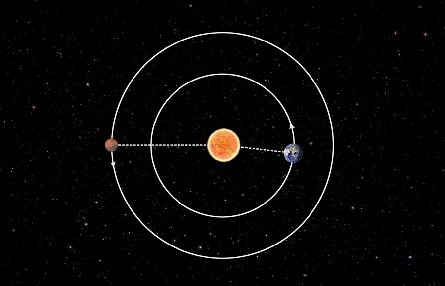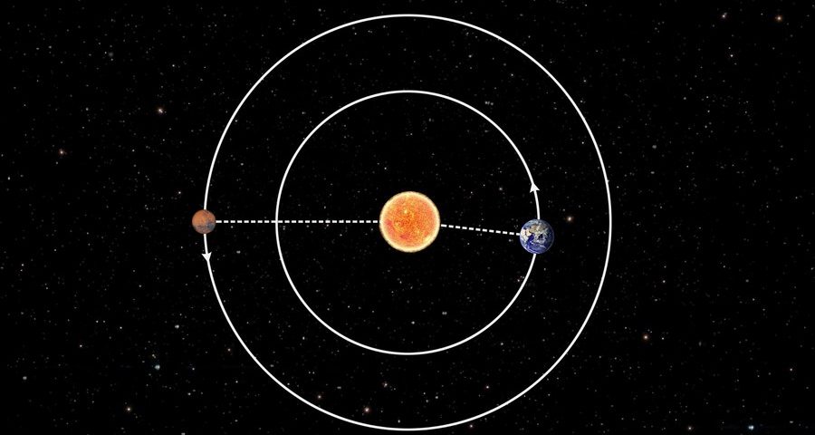 Uma conjunção solar é quando Marte e a Terra se movem para lados opostos do Sol e os três ficam quase perfeitamente alinhados. Durante este período, a radiação eletromagnética solar aumenta, interrompe e até mesmo bloqueia as comunicações entre as sondas de Marte e a Terra.