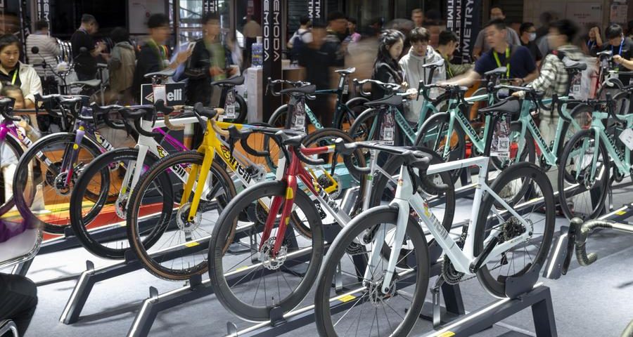 (250505) -- SHANGHAI, May 5, 2025 (Xinhua) -- This photo taken on May 5, 2025 shows the 2025 China International Bicycle Fair in east China's Shanghai. The four-day 2025 China International Bicycle Fair kicked off at Shanghai New International Expo Centre on Monday, drawing nearly 1,600 enterprises from home and abroad to participate. (Xinhua/Cai Yang)