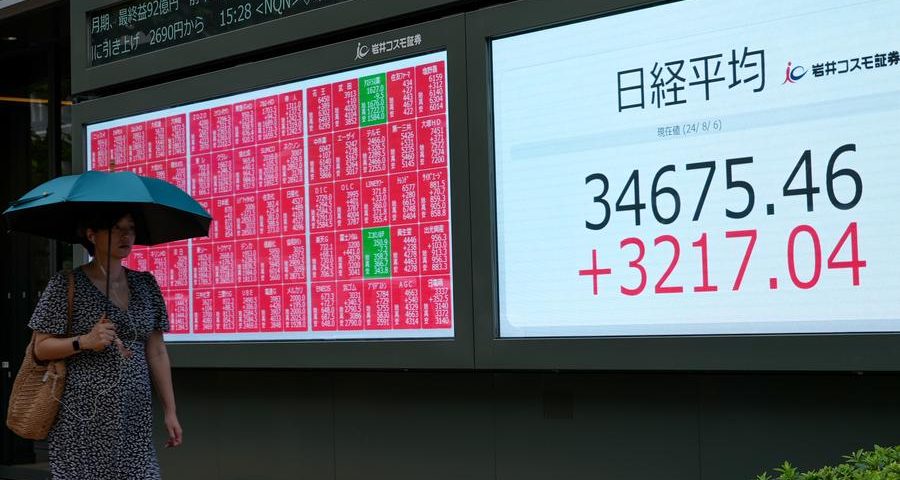 Após a queda dramática na segunda-feira, as ações de Tóquio se recuperaram fortemente na terça-feira, com o Nikkei Stock Average ganhando mais de 10% durante o início do pregão, registrando seu maior ganho intradiário de todos os tempos.