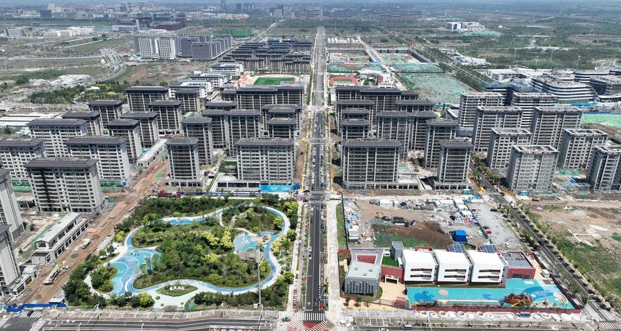 (250920) -- CHONGQING, Sept. 20, 2025 (Xinhua) -- A drone photo shows new energy vehicles at the Seres Super Factory in Liangjiang New Area, southwest China's Chongqing, Sept. 19, 2025. As a major automotive manufacturing hub, Chongqing produced 1.659 million units in the first eight months of the year, up 7.6 percent year on year, while new energy vehicles (NEVs) production surged 31 percent to 690,000 units during the period. (Xinhua/Wang Quanchao)