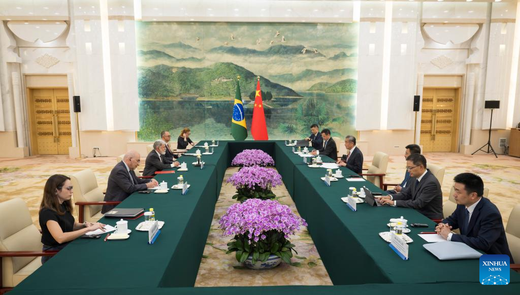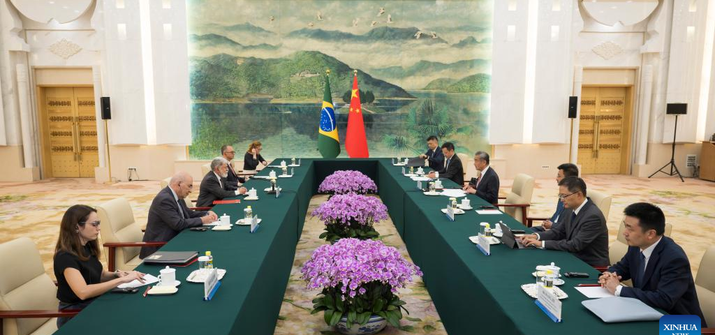 Beijing – O principal diplomata da China, Wang Yi, reuniu-se na quinta-feira com Celso Amorim, assessor-chefe do presidente do Brasil, que está na China para participar das comemorações que marcam o 80º aniversário da vitória na Guerra de Resistência do Povo Chinês contra a Agressão Japonesa e na Guerra Antifascista Mundial.