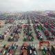 (241222) -- SHANGHAI, Dec. 22, 2024 (Xinhua) -- An aerial drone photo shows a view of Yangshan Port of Shanghai Port, east China, Dec. 18, 2024. Shanghai Port became the first in the world to see the annual container throughput exceed 50 million 20-foot equivalent units (TEUs) on Sunday. The port has ranked first globally for 14 consecutive years in terms of annual container throughput. TO GO WITH "1st Ld: Shanghai Port sees annual container throughput exceed 50 million TEUs" (Xinhua/Fang Zhe)