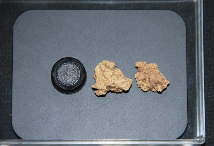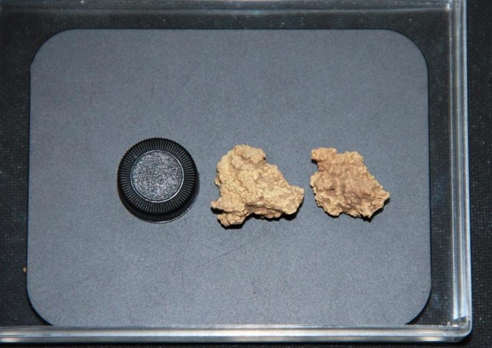(240927) -- BEIJING, Sept. 27, 2024 (Xinhua) -- This undated file photo shows the comparison of a tube cap (L) and two Bronze Age cheese samples unearthed from a tomb site in northwest China's Xinjiang Uygur Autonomous Region. The 3,500-year-old mummies unearthed two decades ago in Xinjiang region captured global attention this week after scientists sequenced DNA from three cheese samples found at their burial site, revealing the secrets of the world's oldest known fermented dairy products. TO GO WITH "China Focus: Cheese from mummies' graves reveals secrets of ancient fermentation" (Photo by Yang Yimin/Xinhua)