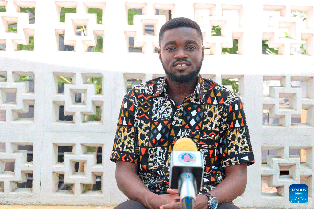 Kwaku Amponsah Asiama, assistente executivo e político do secretário-geral do Novo Partido Patriótico de Gana, fala em entrevista em Accra, Gana, em 10 de maio de 2023. A rápida recuperação econômica e o desenvolvimento tecnológico da China trarão mais benefícios para o povo africano, disse um político ganense. Foto: por Seth