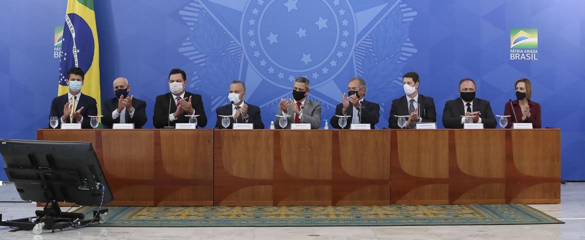 A cerimônia de sanção reuniu vários ministros no Palácio do Planalto. O presidente participou por videoconferência do Palácio da Alvorada.