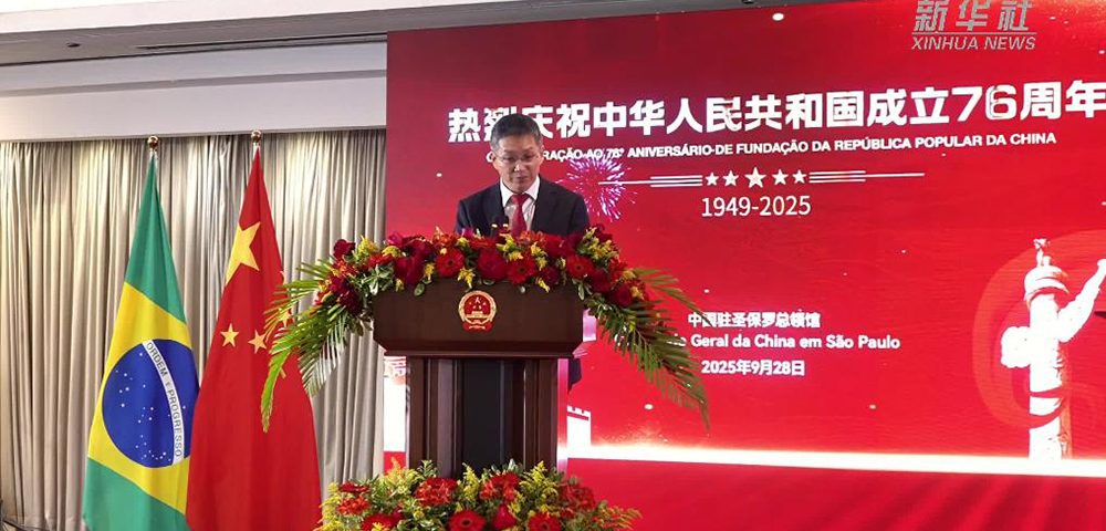 Yu Peng, cônsul-geral da China em São Paulo, disse em sua fala que ao longo dos últimos 76 anos, sob a liderança do Partido Comunista da China, o povo chinês se uniu e lutou, abrindo o caminho da modernização ao estilo chinês e criando dois grandes milagres — o rápido desenvolvimento econômico e a estabilidade social de longo prazo.